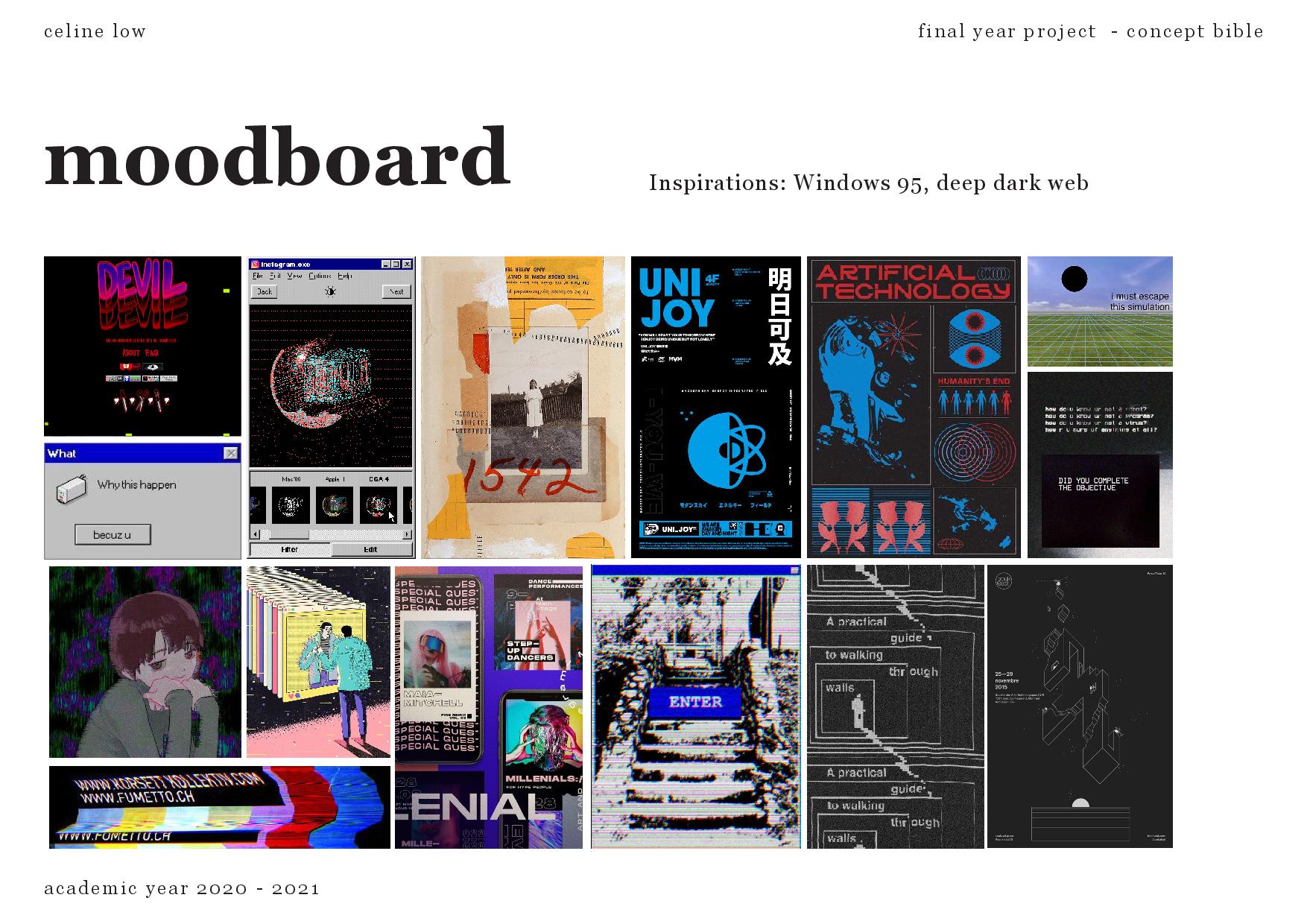I have always been interested in using a different era’s technology to represent a different world. I wanted to make it obviously different between reality and the “virtual alternate world”. I have always felt drawn to pixel art myself, and how the old Windows interface from the 1990s fitted that pixel look as well. I was drawn to the idea of recreating this small slice of uncanniness where new met old, and organised messes were a good way to represent my brain during dissociation. This resulted in digitalware of the 90s becoming a huge part of my project, where I made use of old tech used in a “modern” setting in this alternate world.